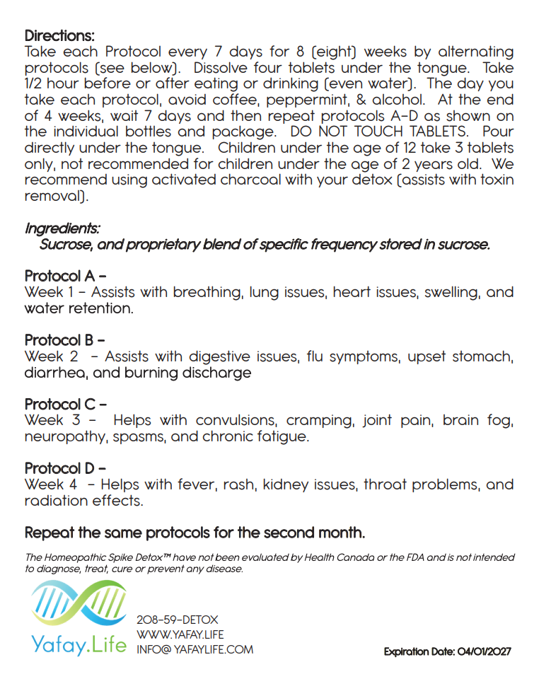 The Homeopathic Spike Detox has not been evaluated by Health Canada or the FDA and is not intended to diagnose, treat, cure, or prevent any disease.