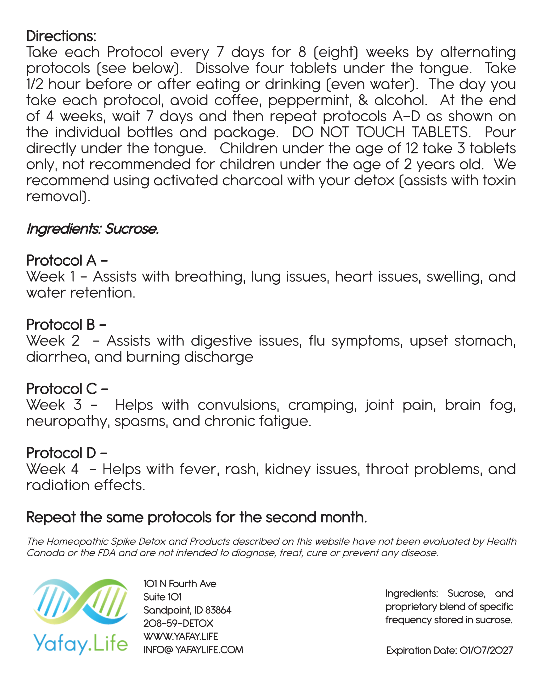 The Homeopathic Spike Detox has not been evaluated by Health Canada or the FDA and is not intended to diagnose, treat, cure, or prevent any disease.